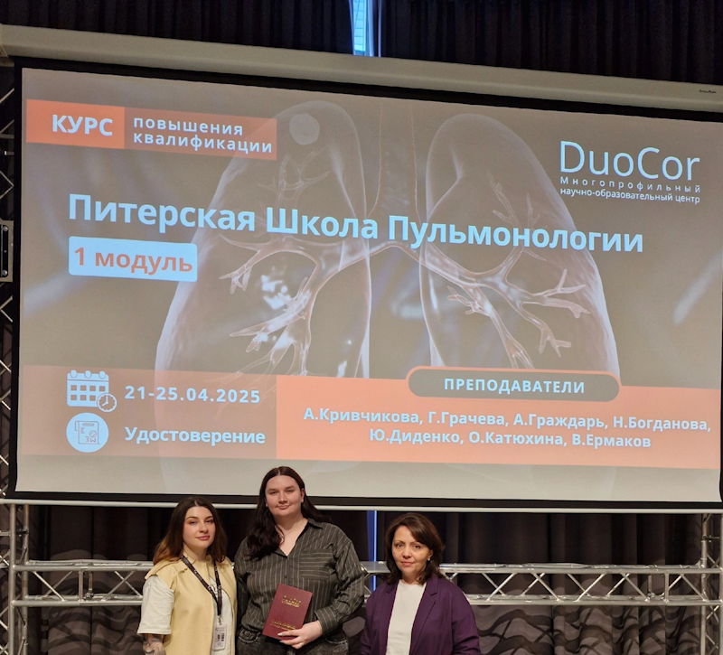 Герман Юлия Максимовна, наш терапевт, завершила учёбу в петербургской Школе пульмонологии при мультидисциплинарном научном центре DuoCor, получив дополнительную квалификацию — пульмонолога.